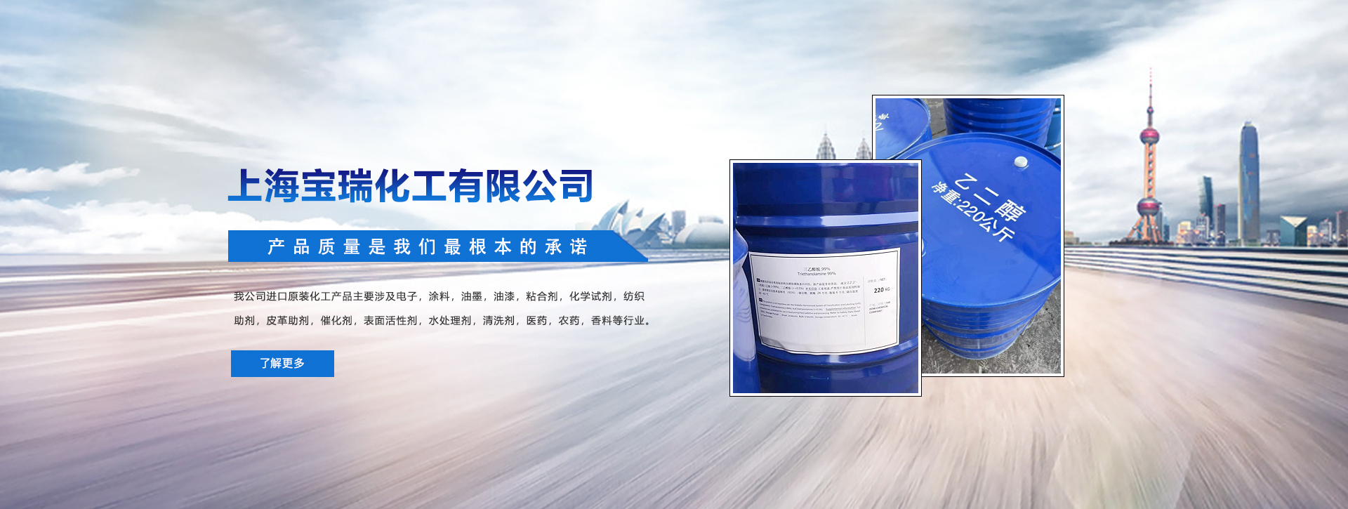 上海寶瑞化工有限公司組建于二00三年,是專門(mén)經(jīng)營(yíng)進(jìn)口原裝化工原料的專業(yè)化工公司. 公司自創(chuàng)建以來(lái). 一直致力于國(guó)內(nèi)外市場(chǎng)的開(kāi)發(fā),不斷拓寬經(jīng)營(yíng)渠道,擴(kuò)大經(jīng)營(yíng)規(guī)模,并且與美國(guó)DOW , SHELL , EXXONMOBIL,德國(guó)BAYER, BASF。法國(guó)ARKEMA ,韓國(guó)LG ,SKC,南非SASOL南京揚(yáng)子石化.上海金山石化,吉林吉化等多家企業(yè)建有長(zhǎng)期隱定的合作關(guān)系。我司的銷(xiāo)售網(wǎng)絡(luò)主要遍及華東地區(qū)。 與多家外資企業(yè),中外合資企業(yè),民營(yíng)企業(yè)建立了直供的業(yè)務(wù)關(guān)系.為行業(yè)的高端廠家提供優(yōu)質(zhì)原料和專業(yè)周到的服務(wù)。在和國(guó)內(nèi)外優(yōu)秀企業(yè)建立良好的合作關(guān)系的同時(shí),我司還將我們所掌握的國(guó)內(nèi)外多種行業(yè)的發(fā)展信息反饋給我們的相關(guān)行業(yè)的客戶,為我們的客戶提供了眾多其本行業(yè)所發(fā)展趨勢(shì)的信息,并積極引導(dǎo)客戶掌握最新產(chǎn)品行情和工業(yè)技術(shù)。贏得了國(guó)內(nèi)外合作伙伴的贊賞和信任。